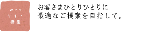 プロモーション戦略立案(SEO対策、web広告やイベント、それらに関する印刷物作成)とその実施をワンストップにて行います。また、ログ解析を分析し、サイトの評価・改善を繰り返し行い、次なるステップへサイトを導きます。